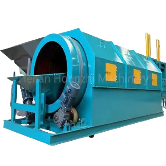 The trommel screen features a fully sealed structure that prevents dust and exhaust gas leakage, and it operates with low noise levels due to its high-friction roller assembly.
