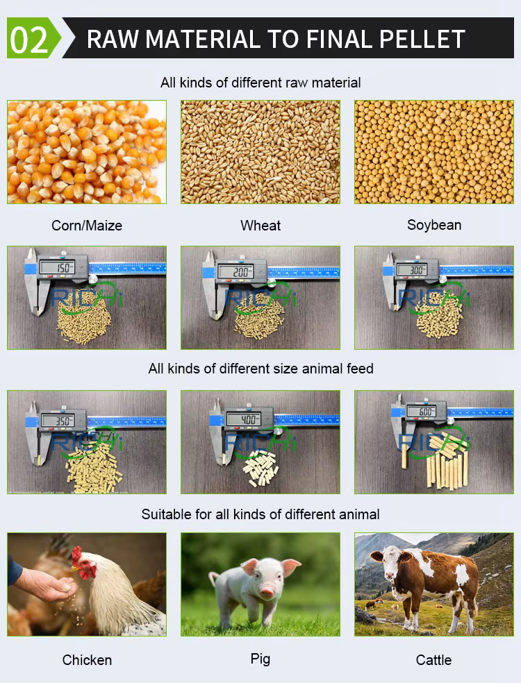 The pellet diameter can range from 2 to 12 mm, allowing for customization based on the requirements of your livestock.