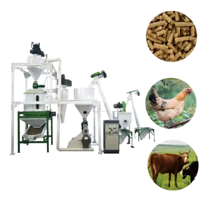This feed making line is ideal for the animal feed production industry, particularly in farms and manufacturing plants.