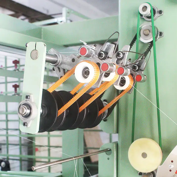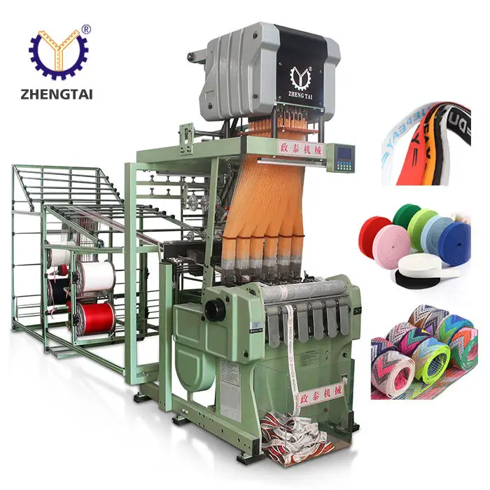 The machine is designed to weave elastic jacquard fabric, but it can also work with various textile materials suitable for jacquard weaving.