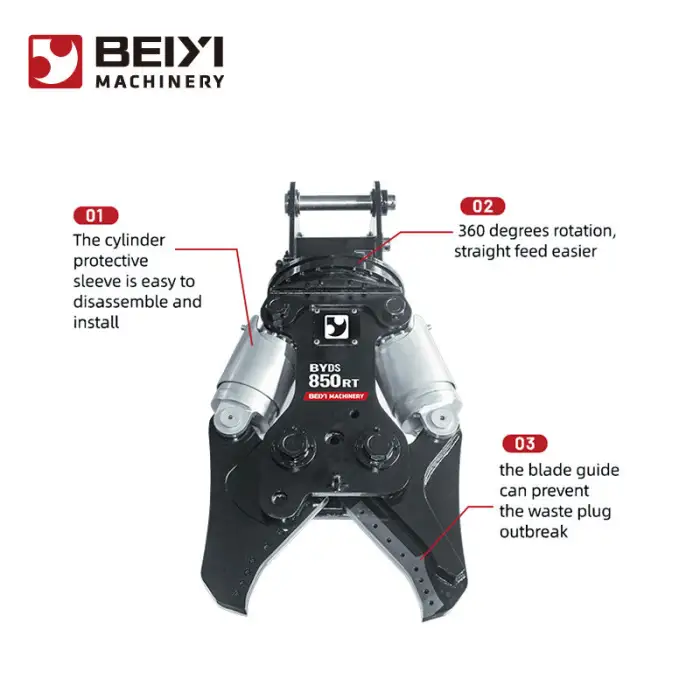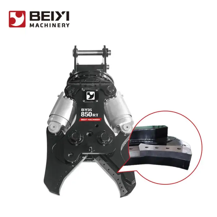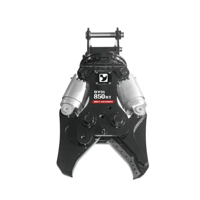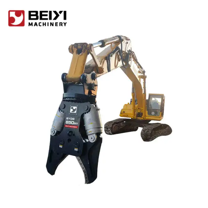 This attachment is designed to crush and shear concrete and metal, making it ideal for demolition and recycling projects.