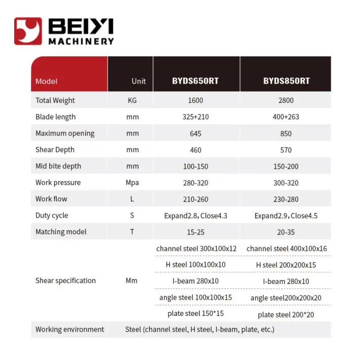 The double cylinder hydraulic system provides powerful operation, resulting in efficient crushing and shearing of tough materials.