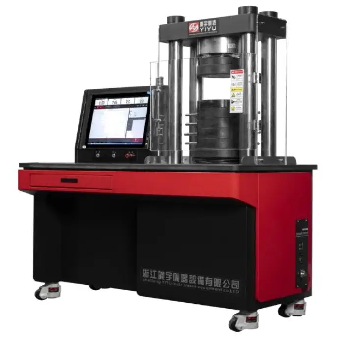 The machine is designed with safety in mind, including robust construction to withstand high pressures during testing.