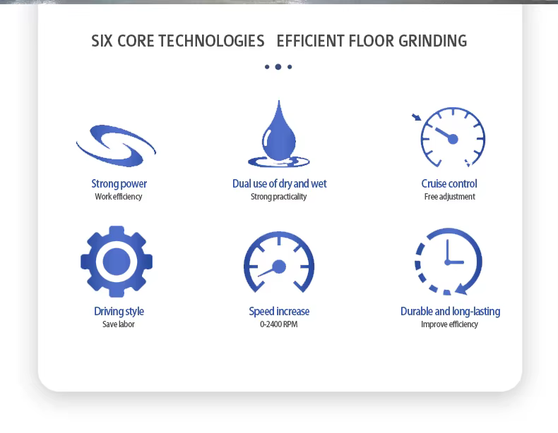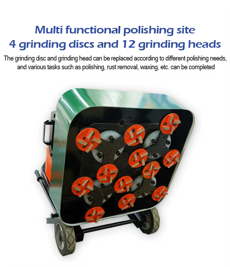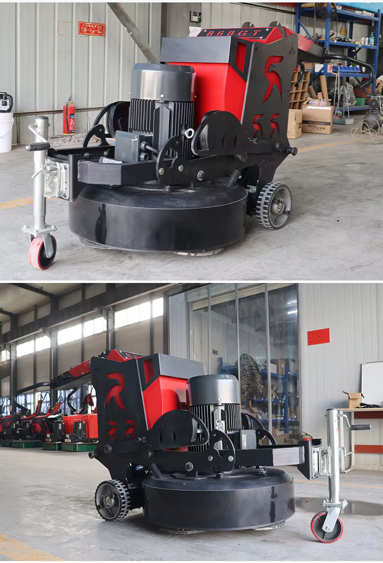 The machine can be used for grinding and polishing concrete floors, renovating terrazzo surfaces, removing paint, and preparing epoxy floors for coating.