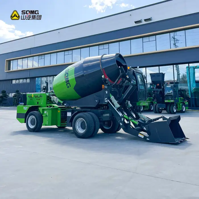 The self-loading design allows the truck to automatically load the required amount of materials for concrete mixing, simplifying the operation.