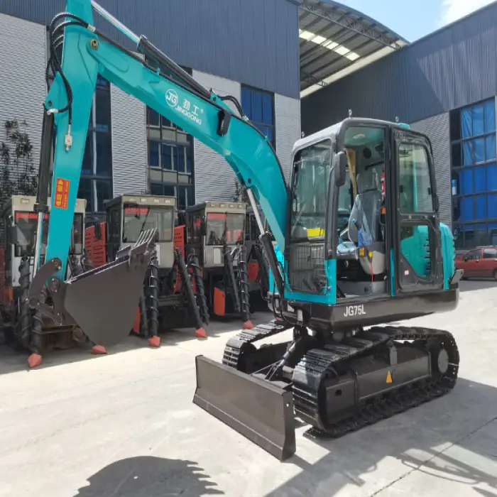 This excavator is suitable for site preparation, excavating foundations, landscaping, grading, digging trenches, and material handling.