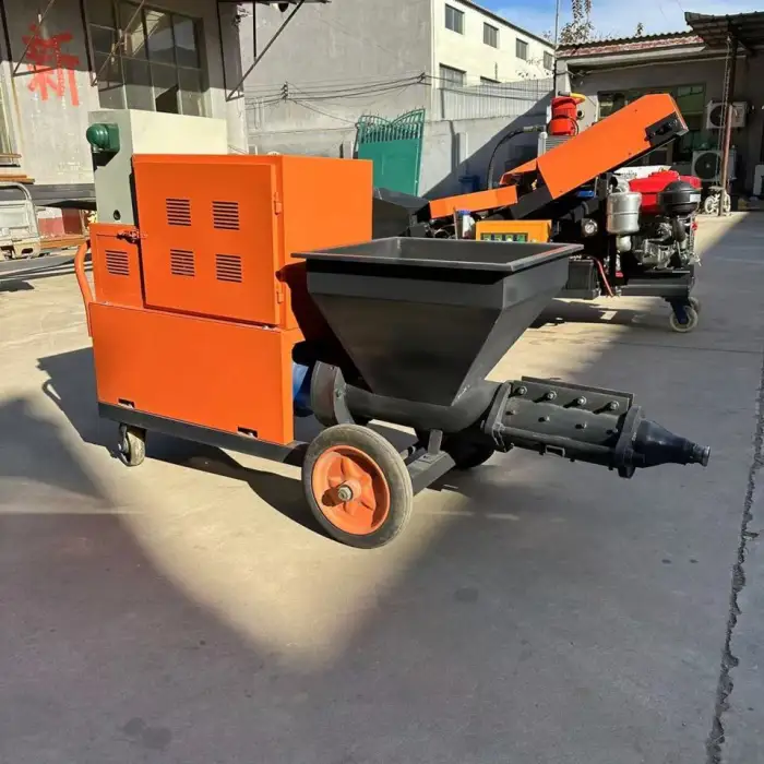 The Construction Site Widely Used Cement Mortar Putty Powder Gypsum Spraying Plastering Rendering Machinery is capable of handling various materials such as cement, mortar, putty, and gypsum.