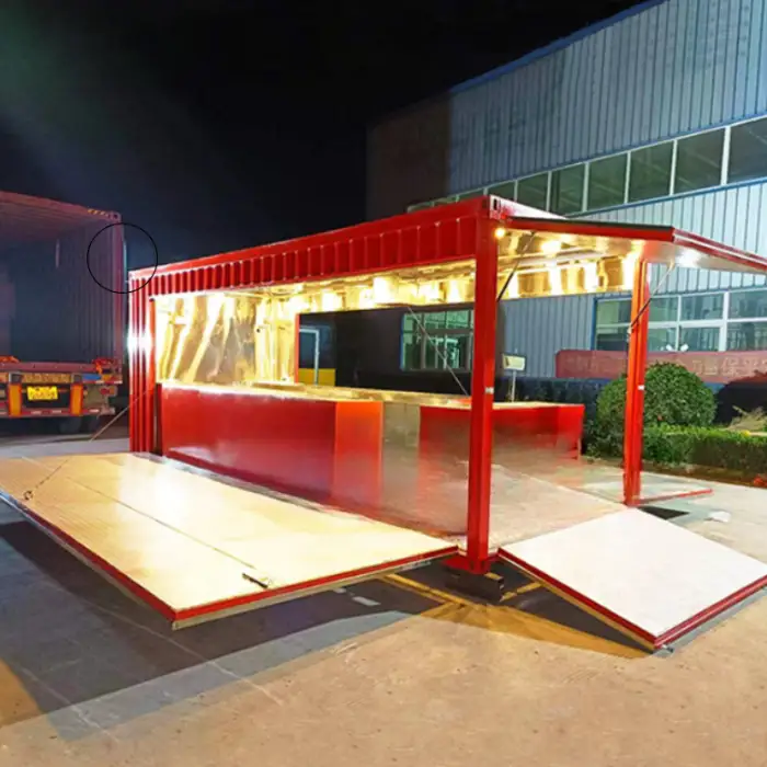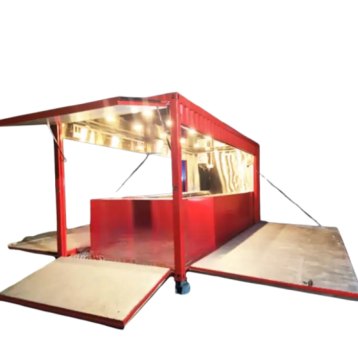 This multifunctional mobile kitchen is ideal for coffee shops, food trucks, pop-up restaurants, outdoor events, festivals, catering services, fairs, and any temporary or semi-permanent food-service location requiring flexible, mobile operations.