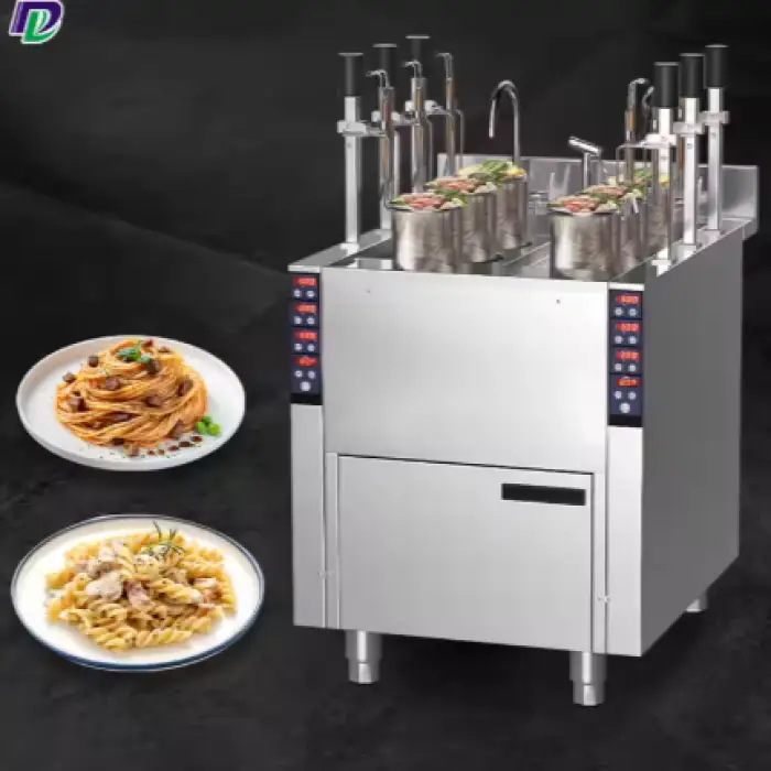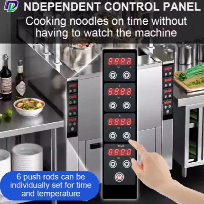 It is a commercial electric pasta/noodle cooker with an automatic lift-up cooking basket and controls designed to automate noodle boiling for consistent results in busy kitchens. It is built from 304 stainless steel for durability and easy cleaning.