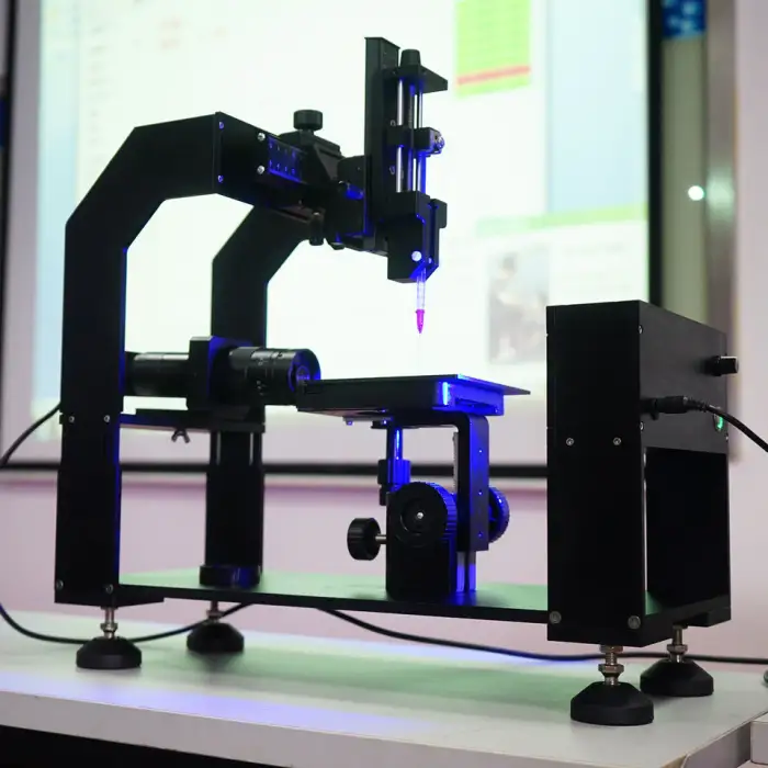 This device supports multiple measuring methods including liquid drop, solid surface energy, and pendant drop.