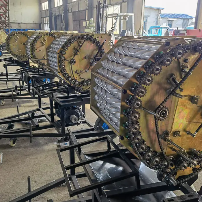 The baler is equipped with 30 rolling drums.