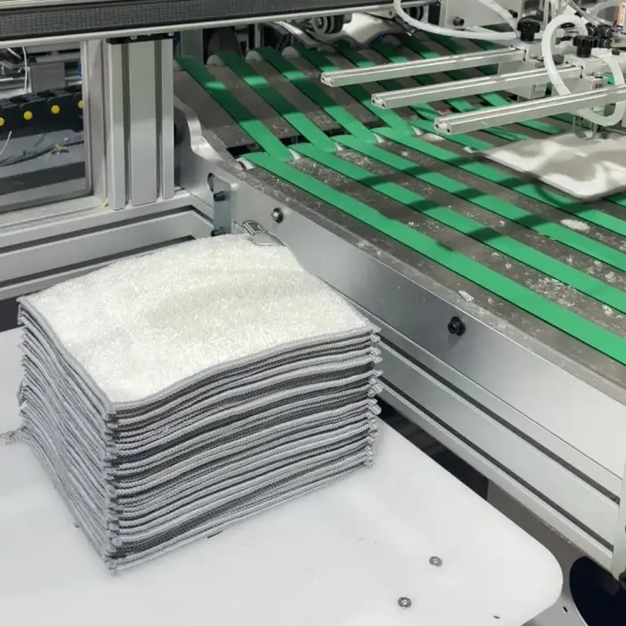 The machine can produce towels at a speed of up to 110 towels per minute, significantly reducing production time.