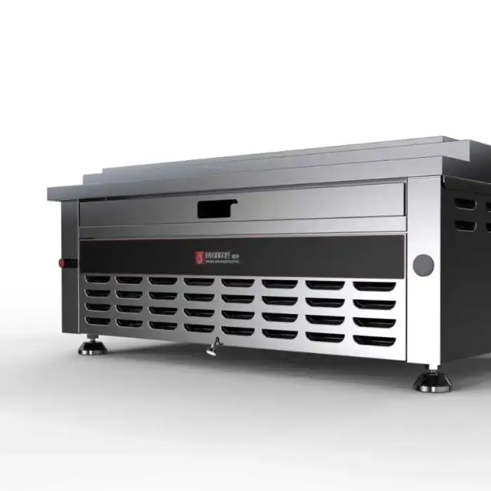 The cooking area measures 650mm x 180mm, providing ample space for grilling multiple items.