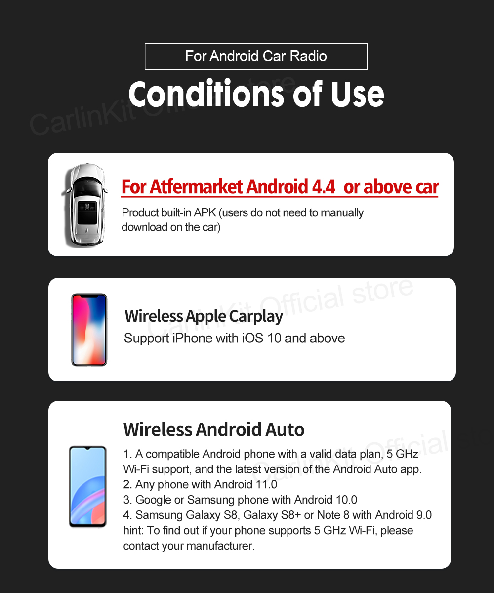 It is compatible with vehicles and aftermarket head units that support wired Apple CarPlay via a USB port. If your car launches CarPlay when you plug in an iPhone using the factory CarPlay USB, this adapter should work. Check the vehicle or head unit manual if you are unsure.