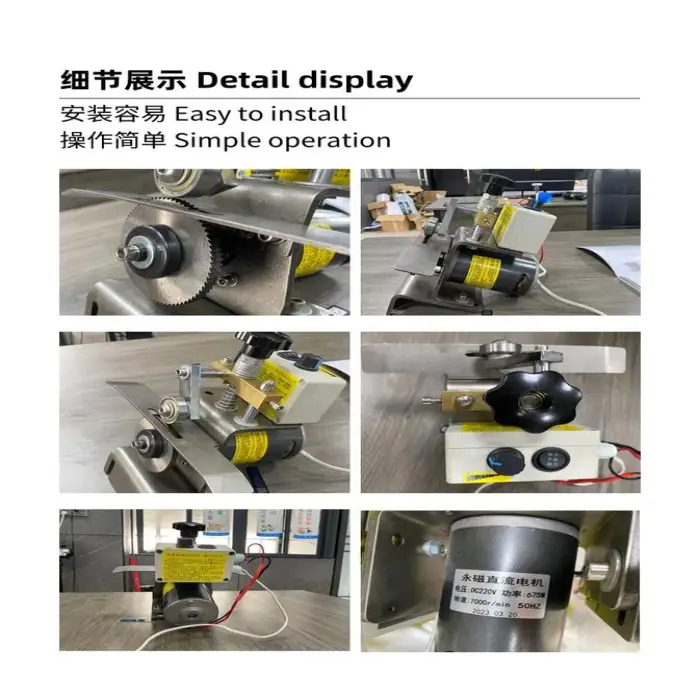 Key features include good adhesion for UV boxes, high-speed operation, compact design, and automatic functionality.