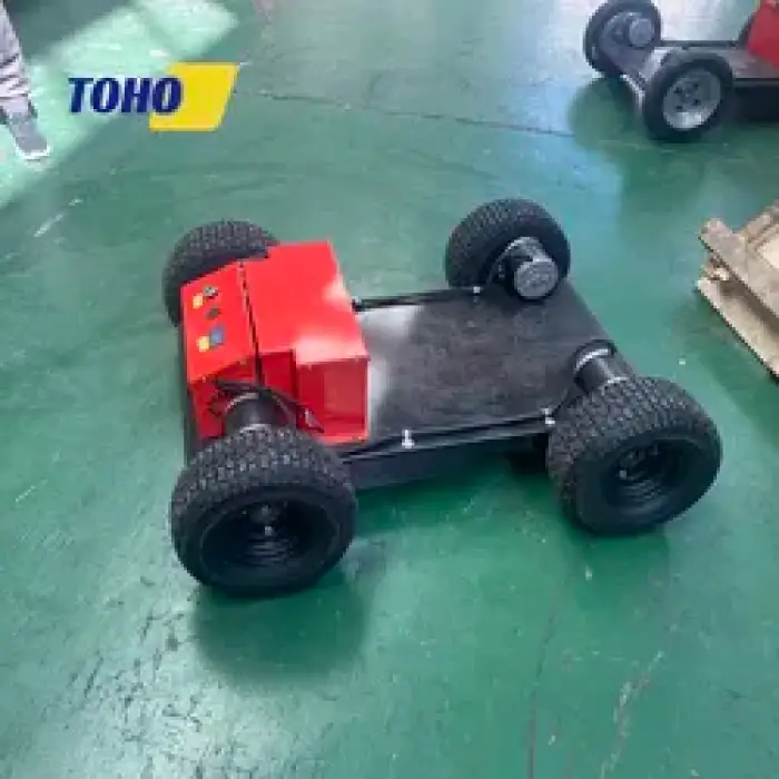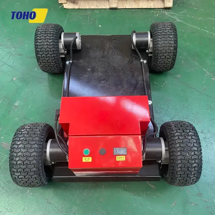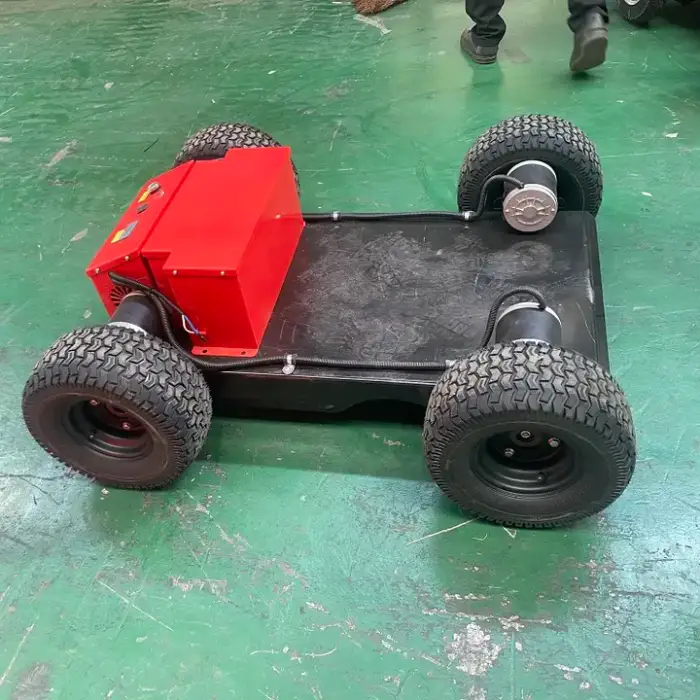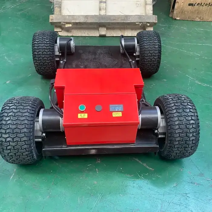 It is a remote-controlled crawler-chassis transport robot designed for outdoor material handling. Built for farms, gardens and construction sites, it combines a durable track chassis with intelligent remote control and a powerful drive system to simplify moving goods outdoors.