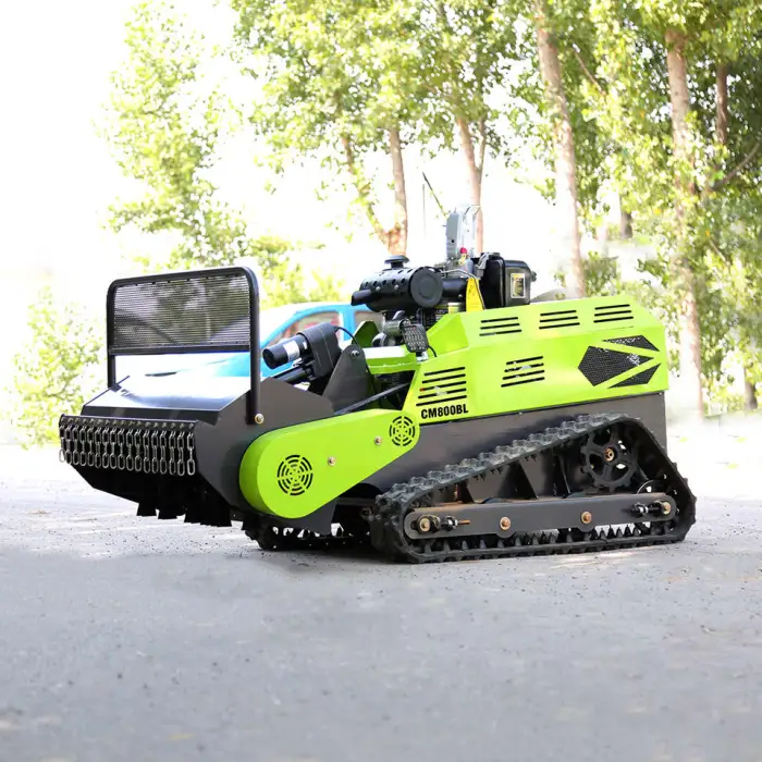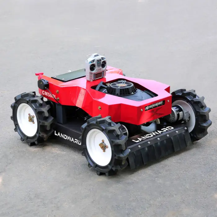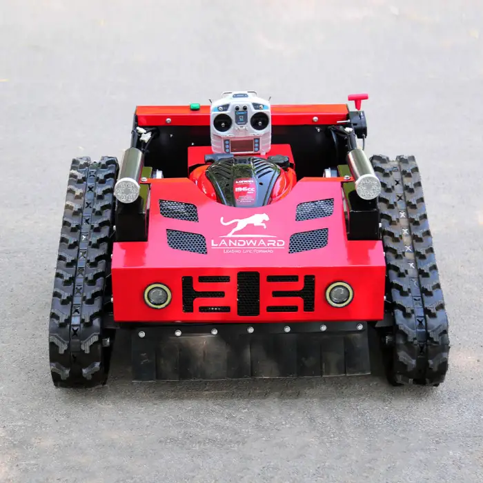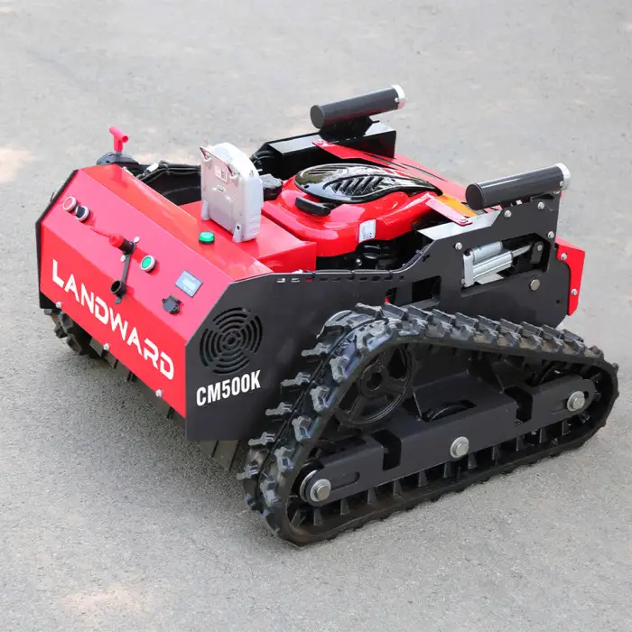 The Crawler Electric Robot Remote Control Lawn Mower operates on an oil electric hybrid power source.