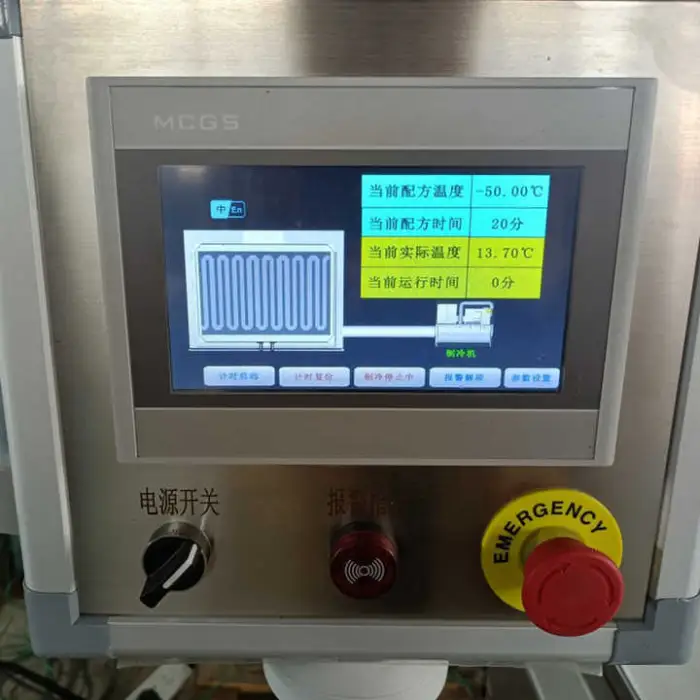 The Cryogenic IQF Tunnel Freezer operates within a temperature range of -20℃ to 0℃.