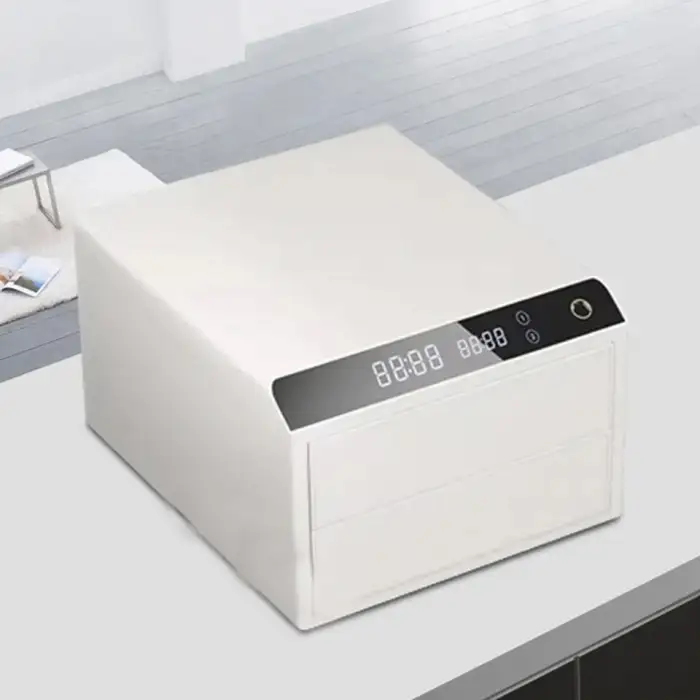 The Crypto Drawers Jewelry Safe features a digital fingerprint lock, ensuring that only registered fingerprints can access the safe.