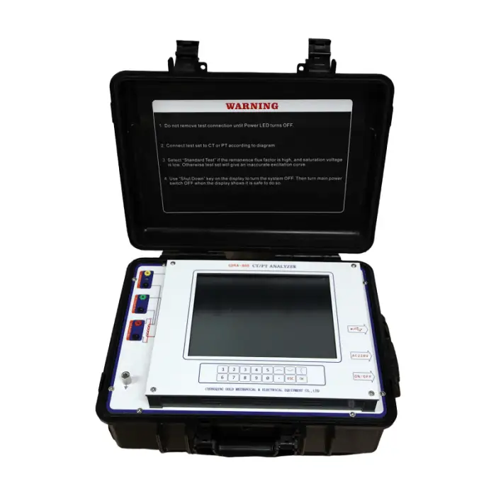 The Current Transformer Tester CT PT Analyzer is a high-voltage instrument designed for testing electrical power systems, specifically current and potential transformers.
