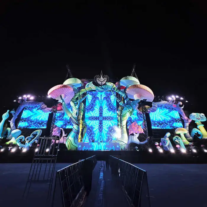 Yes—the stage is designed to accommodate rigging points and can be used with external lighting, speakers and projection/screen systems. However, heavy professional trussing and equipment should be supported by additional structural elements—consult us for load limits and integration plans.