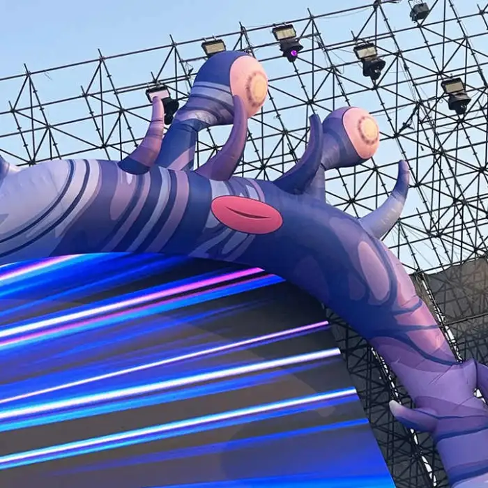 Anchor points are integrated into the design for use with stakes, ratchet straps, sandbags, or water barrels depending on surface type. We provide recommended anchoring layouts for grass, hard surfaces and stages. For windy locations or large units, use multiple heavy ballasts and tie-downs.