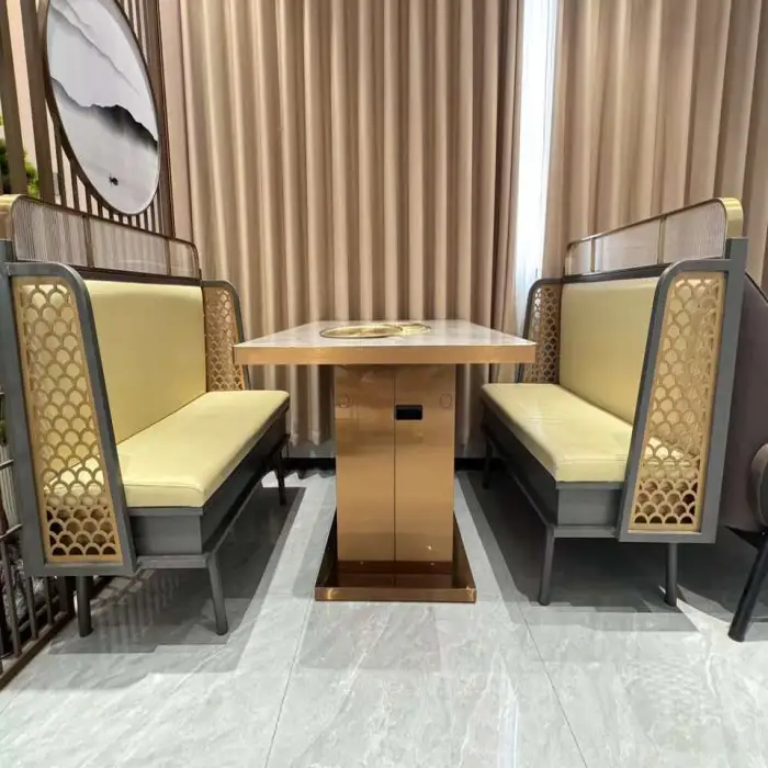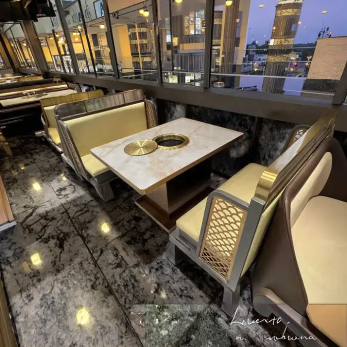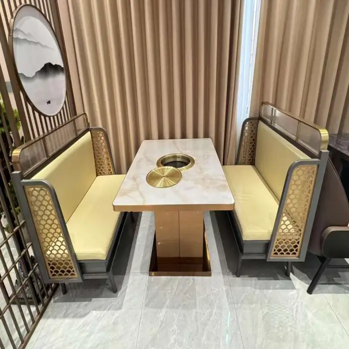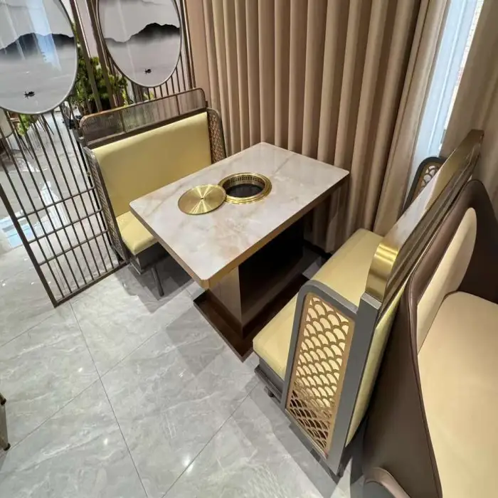 Seating capacity depends on custom dimensions. Typical rectangular commercial tables accommodate 4–8 diners. Provide the number of seats needed when ordering so the manufacturer can recommend appropriate length and grill placement.
