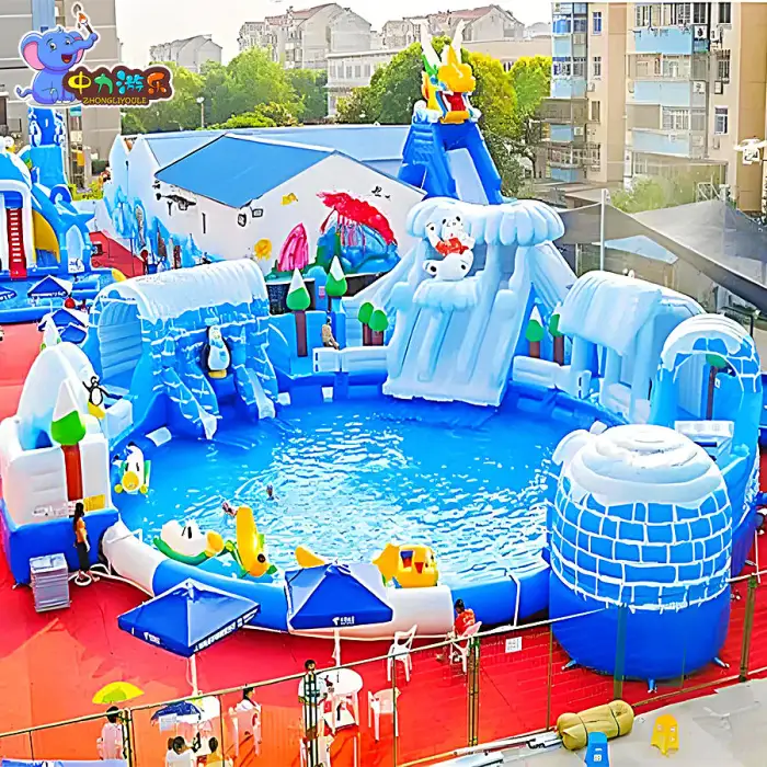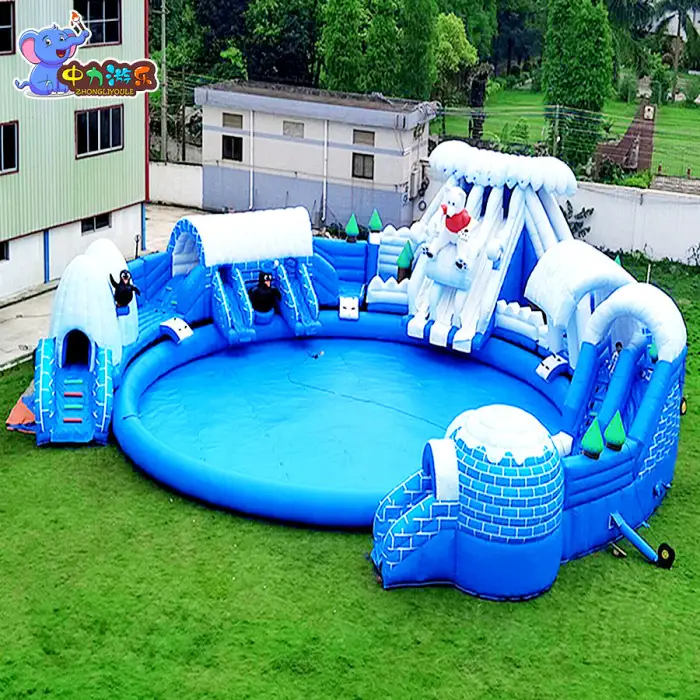 Inflation time depends on blower power but typically takes 10–30 minutes with a suitable electric air blower. A continuous blower is usually required for most inflatable setups; contact the supplier for recommended blower models.
