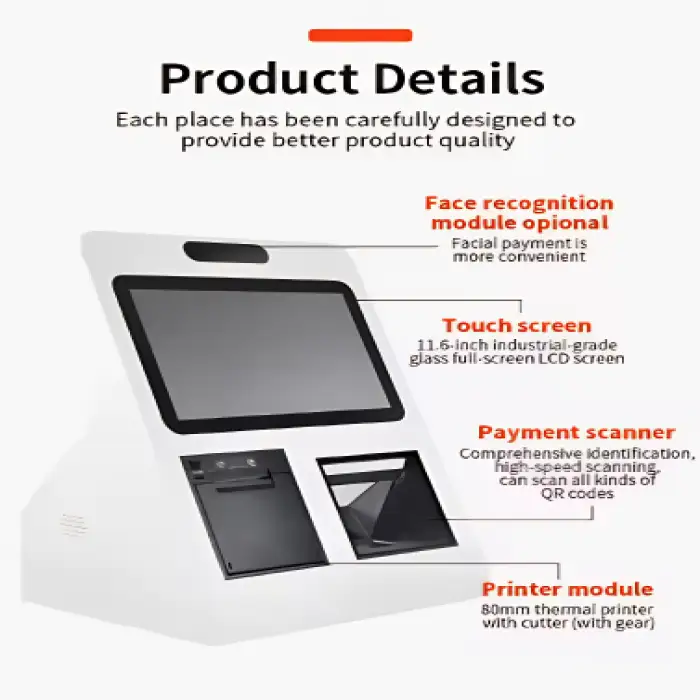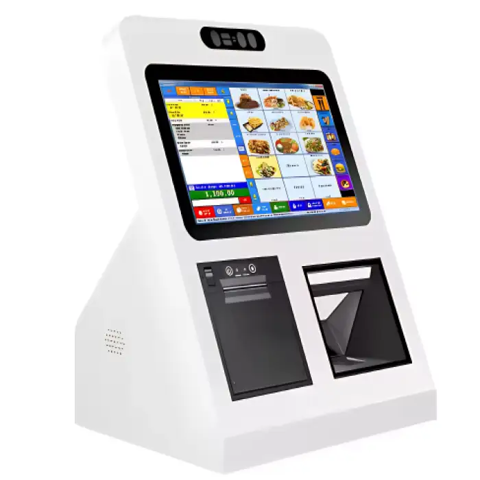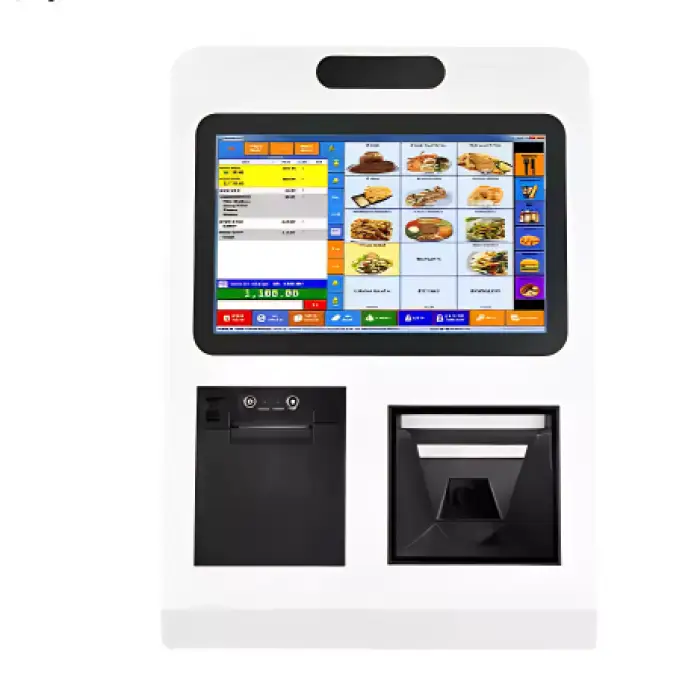 The CY-87 features a powerful Intel J1900 Quad-Core Processor, 4GB DDR3 RAM, a 64GB SSD, a 15.6-inch capacitive touch screen with 1920x1080 resolution, an integrated high-speed thermal printer, and supports various payment options including WeChat and Alipay.