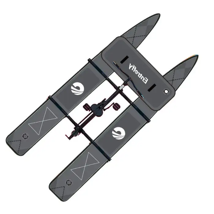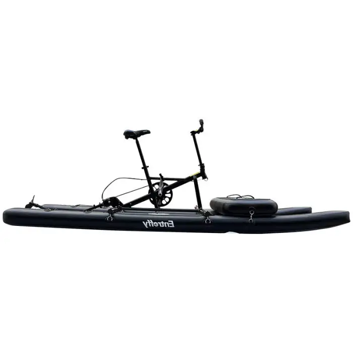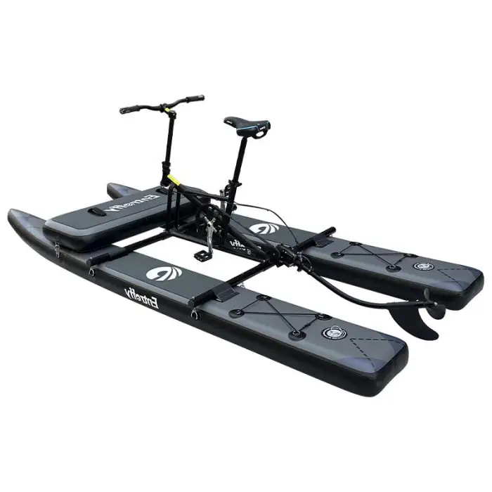 The water bike is made from a combination of Drop Stitch, EVA, and PVC materials for durability.