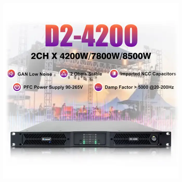 The D2-4200 amplifier can deliver up to 8500 watts per channel at 2 ohms.