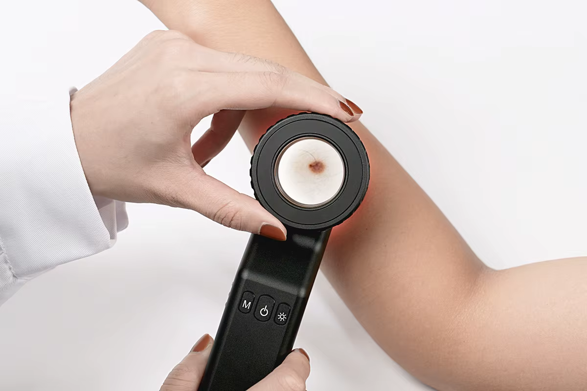 The DE-4100 is designed for dermatology consultations, skin cancer screenings, monitoring skin conditions, and educational purposes.