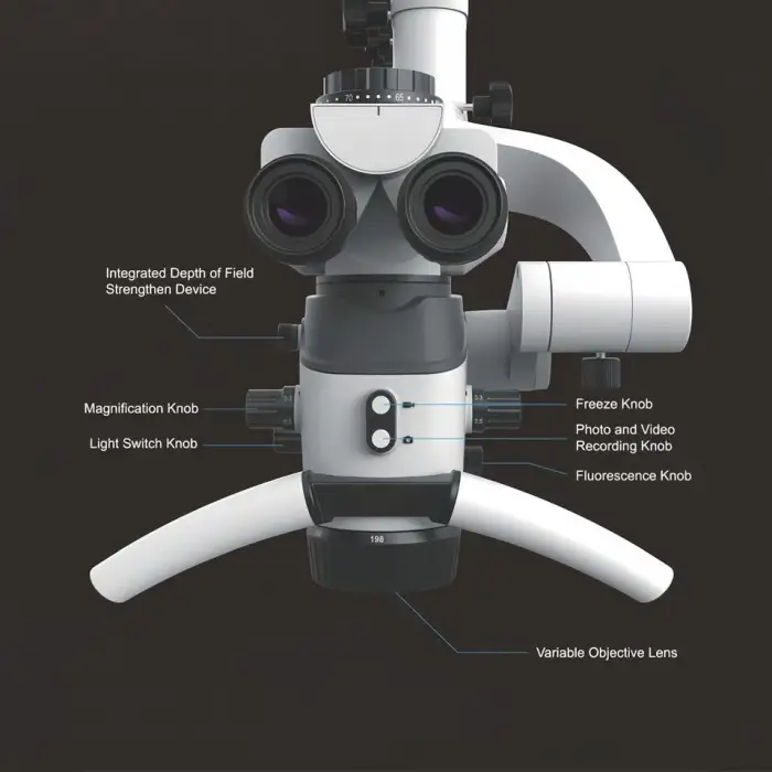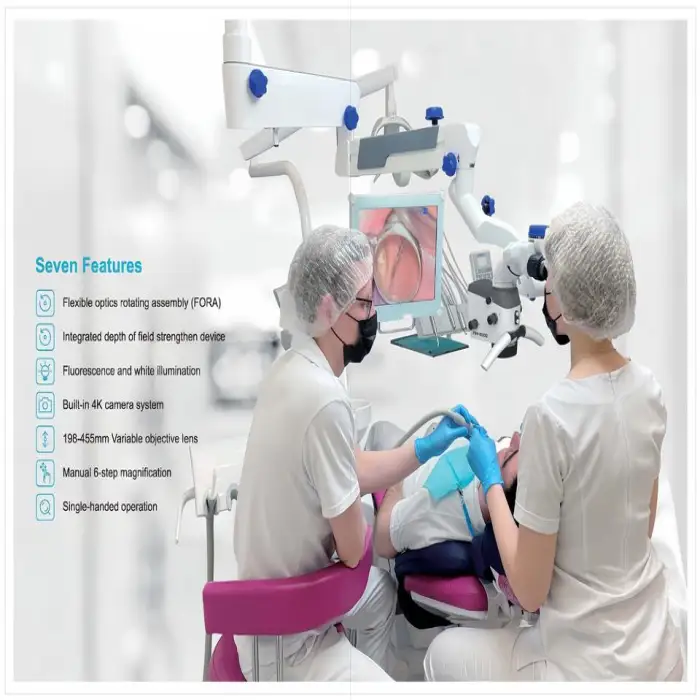 This microscope features Full HD 3D imaging, a built-in 4K camera, and a wide magnification range specifically designed for dental applications.
