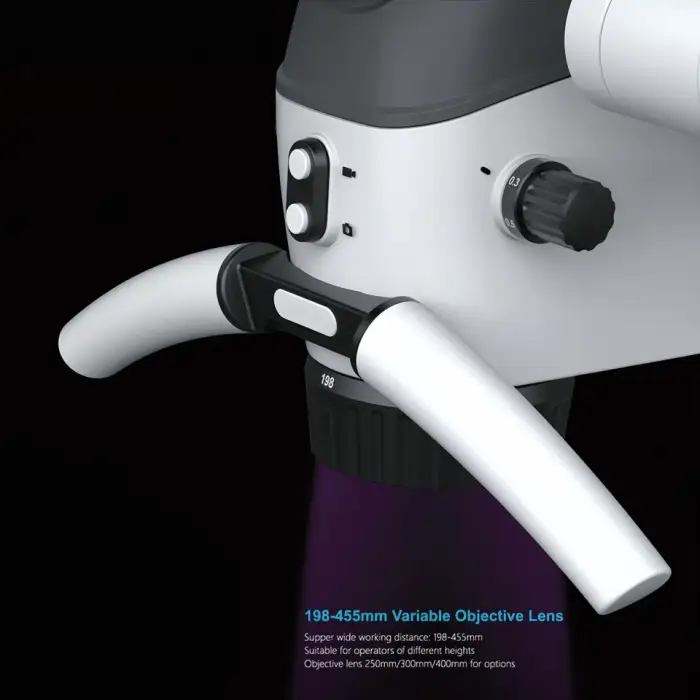 The Dental Full HD 3D Microscope offers a magnification range from 1.4x to 22.8x.
