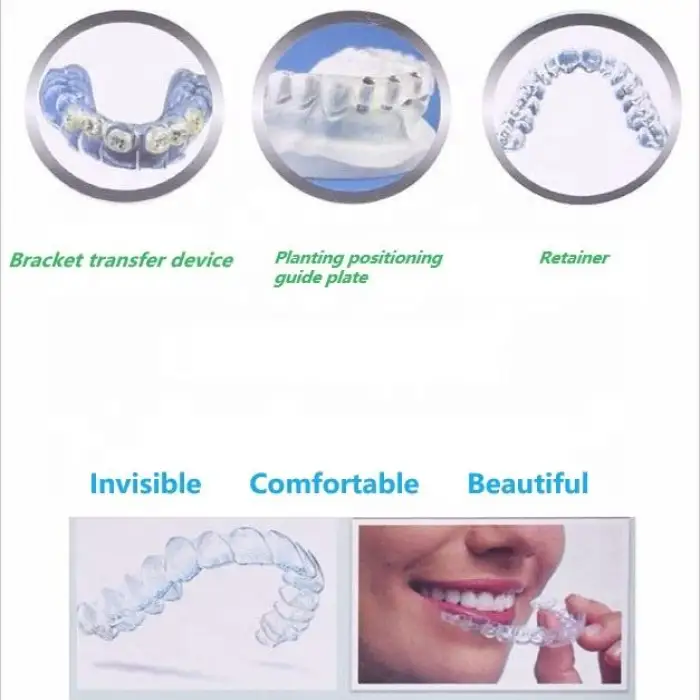 Key features include automatic vacuum forming for quick and precise molds, easy operation, a compact design, high-quality construction, and online technical support.