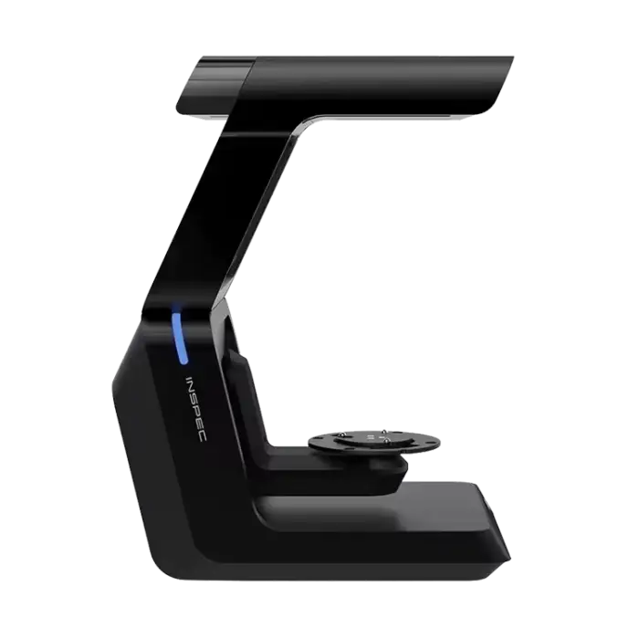 The scanner uses blue light as its light source, which enhances accuracy and detail capture.