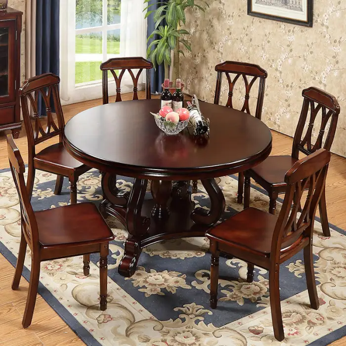 Design Home Furniture Solid Wood Classic Dinner House Round Rotating Dining Table