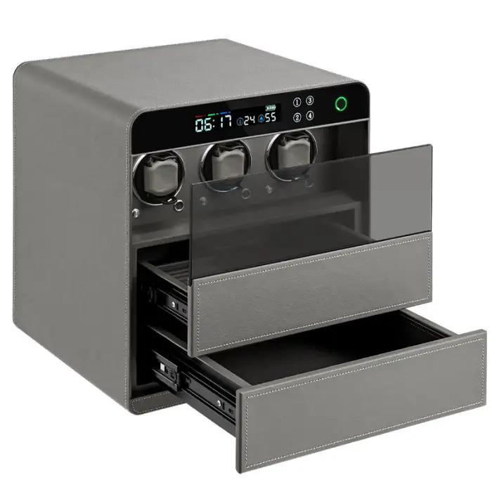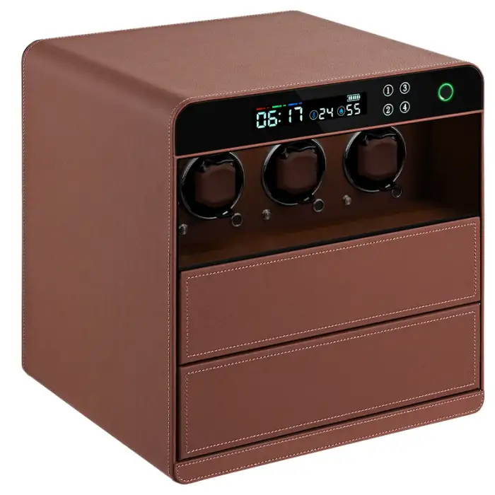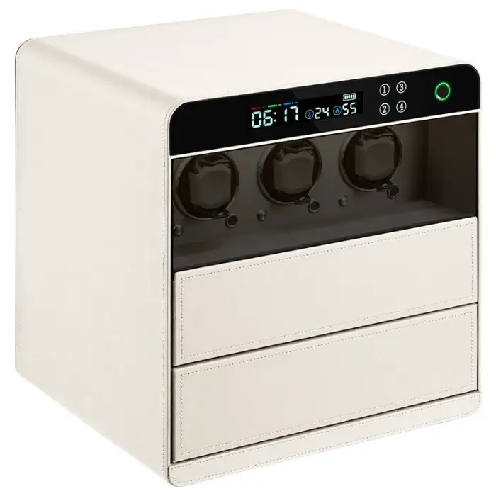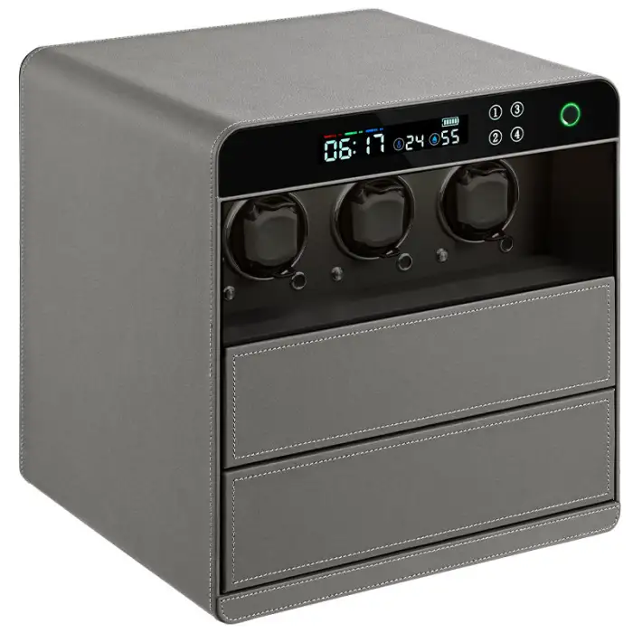 The automatic winding function uses gentle rotation to mimic the natural movement of the wrist, keeping your automatic watches wound and ready to wear.