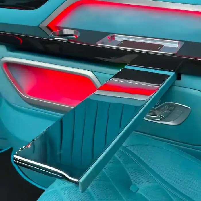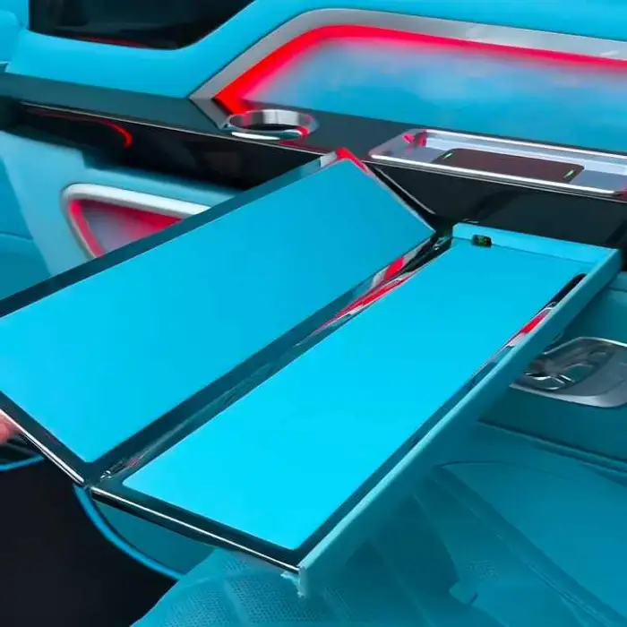 The table typically comes in a stylish design that complements the interior of luxury cars, but specific color options should be confirmed with the retailer.