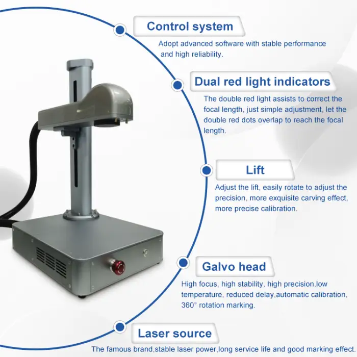 The Desktop 20W Mini Portable Jewelry Metal Fiber Laser Marking Machine requires a 20W power supply.