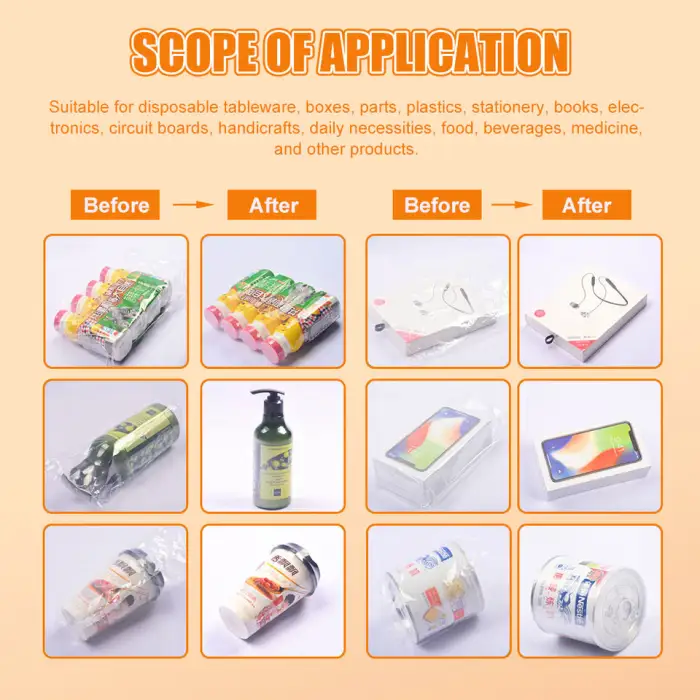 The machine is ideal for food packaging, beverage bottle wrapping, commodity and chemical product packaging, bath bomb production and packaging, as well as general retail product wrapping.