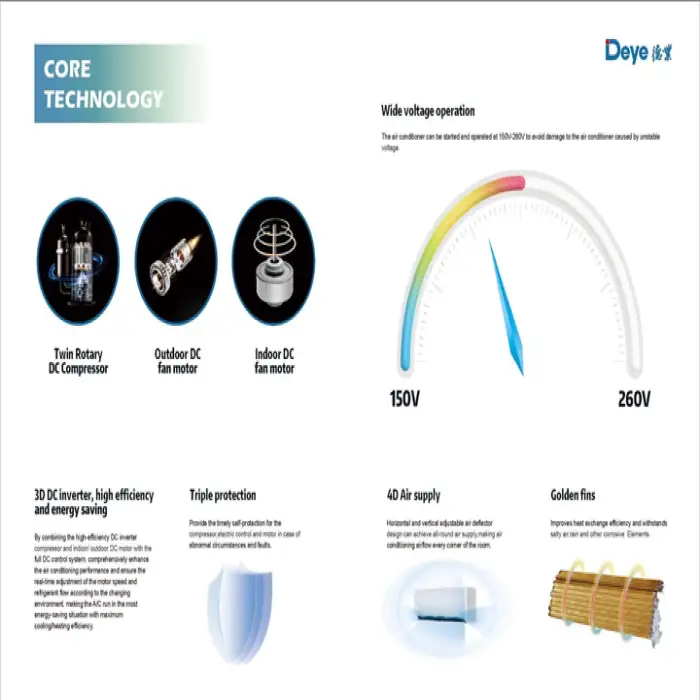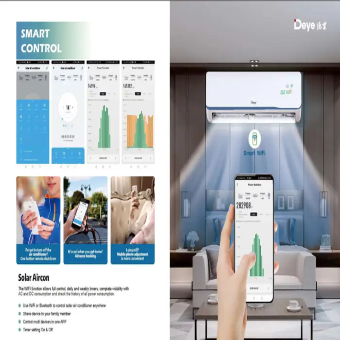 The DEYE Solar Air Conditioner has a cooling and heating capacity of over 12000 BTU, making it suitable for various household needs.