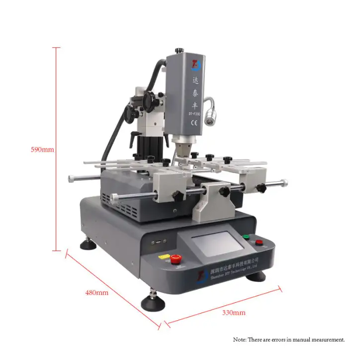 The dimensions of the DH A2E BGA Rework Station are 480 x 330 x 590 mm.