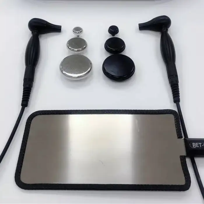 The Diathermy Physiotherapy Smart Tecar Therapy Device is made from durable plastic, ensuring a robust and long-lasting design.