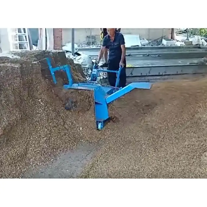 The machine is suitable for mixing and turning mushroom compost, soil preparation, organic waste processing, and enhancing nutrient distribution in compost.