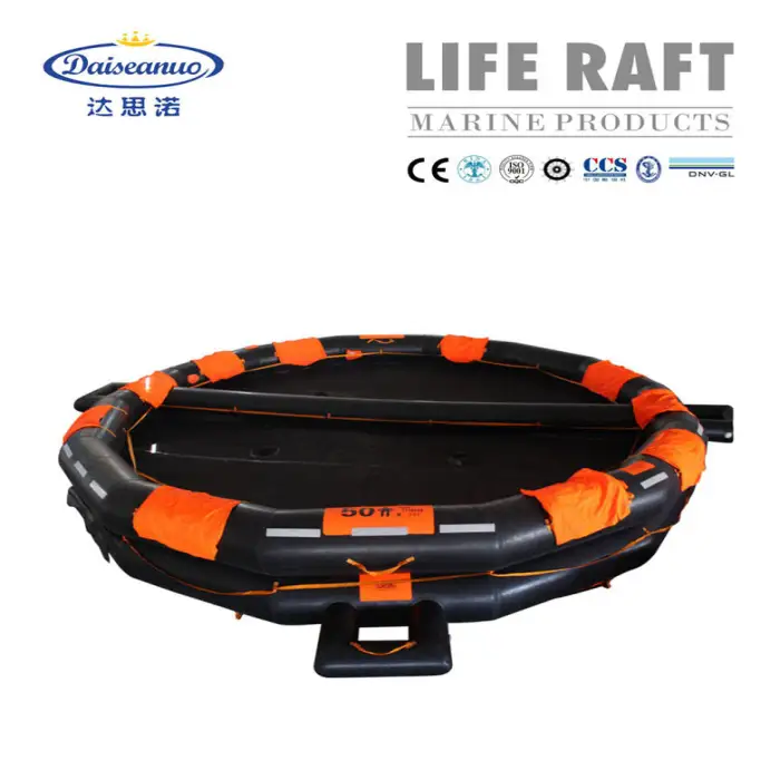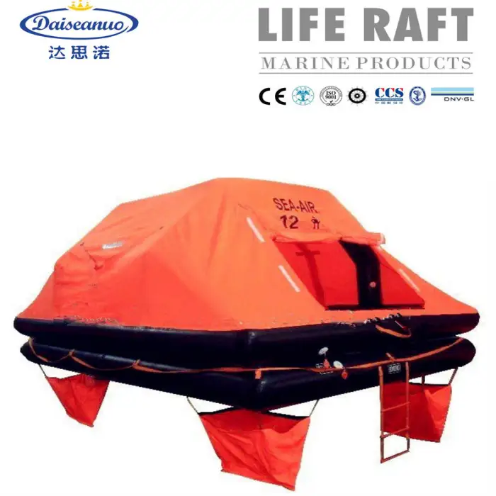 The life raft is branded under 'sea-air', known for its reliability and safety in marine products.