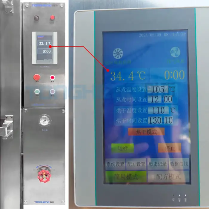 The machine features precise temperature control with an accuracy of ±1°C, ensuring perfect cooking results.
