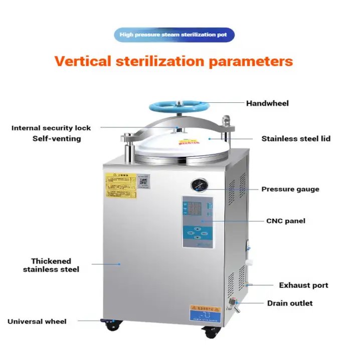 This sterilizer is suitable for dental clinics, medical hospitals, laboratories, and veterinary practices, as well as for mushroom substrate preparation.
