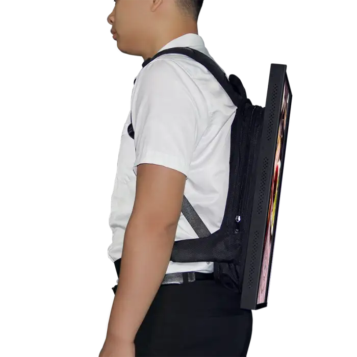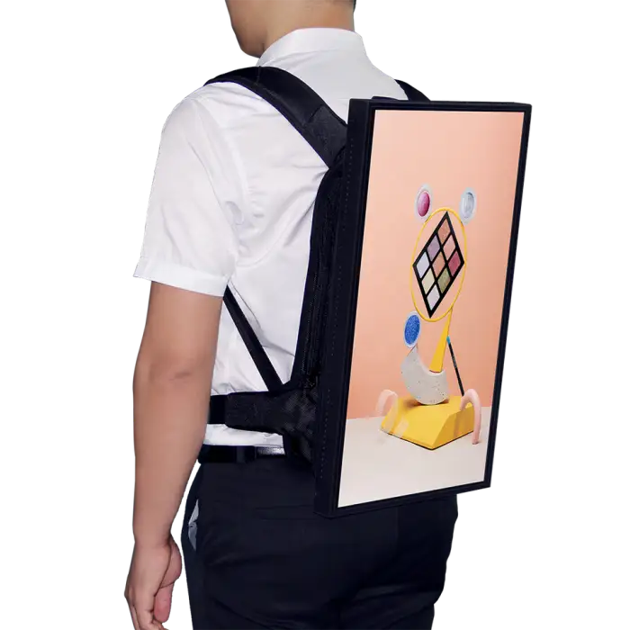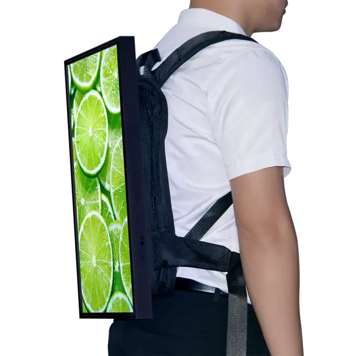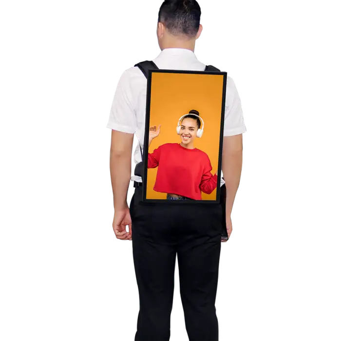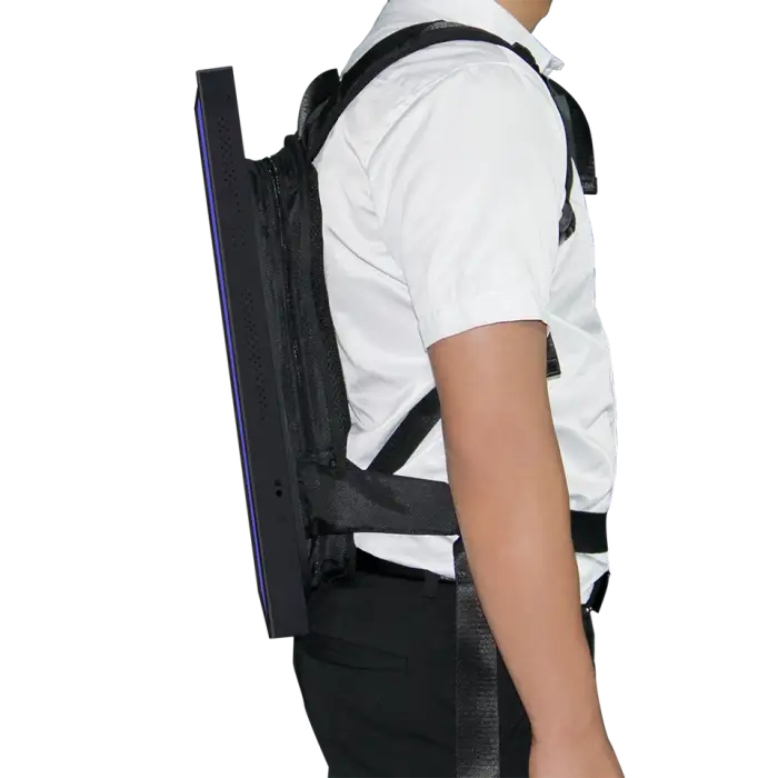 Setting up the backpack is quick and easy. Simply charge the battery, turn on the display, and upload your content via the remote management platform.