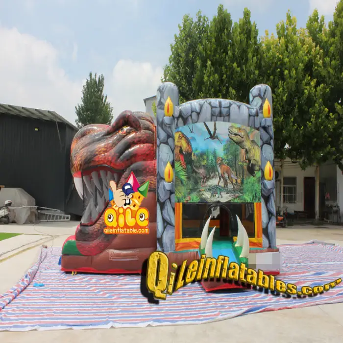 The Dinosaur Themed Bouncing Slide Combo can accommodate a maximum weight capacity of 100-500 kg.